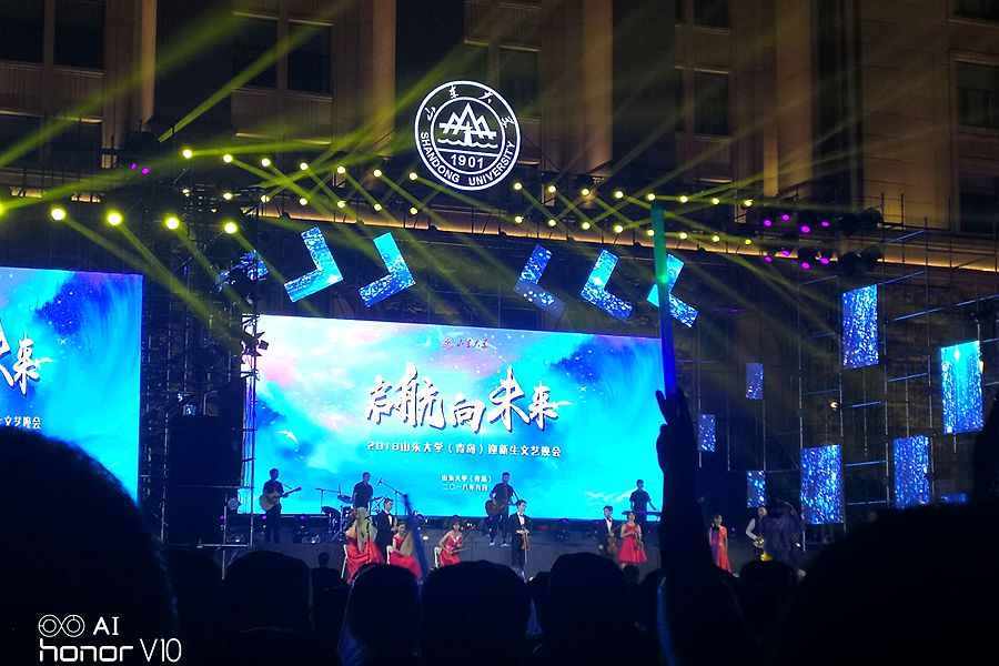 在雨中观看迎新晚会,有水袖青衣的戏剧,也有动次打次的街舞,有赞颂先贤的话剧,也有感恩父母的歌曲,还有激励少年自强的演讲……音乐、舞蹈、歌唱、相声、话剧,帅气的小哥哥、漂亮的小姐姐、英姿飒爽的教官、令人敬佩的老艺术家,还有我们亲爱的辅导员……他们共同完成了这次难忘的迎新晚会。秋雨淅沥,但是浇不灭我们的热情。我们在雨中欢呼,摇曳着荧光棒,为舞台上的他们鼓掌,青春的美好欢愉莫过于此。我想,多年后的我们,也一定不会忘记这次开学典礼吧,华美而动人,热烈又温暖,既有古香古色,又有中西结合,既有经典传承,又有现代潮流,既有阳春白雪,又有下里巴人,最重要的是这里有青春热血的我们,最好的我们,最好的青春。我们的山大,校史百年,温暖可亲,我们是山大人,无论沧桑岁月长,哪怕海角与天涯。