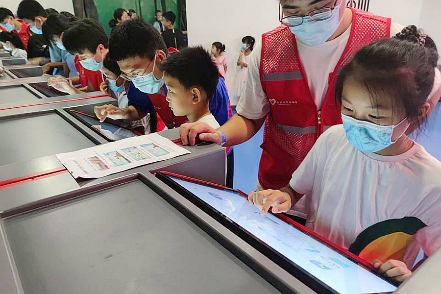 目的地是章丘区华侨城欢乐荟,下车后,我们照顾了几名晕车的孩子,给他们分发了水。渐渐地孩子们神色好转,圆圆的小脸上浮现了红润,欢声笑语再次开始飘荡。