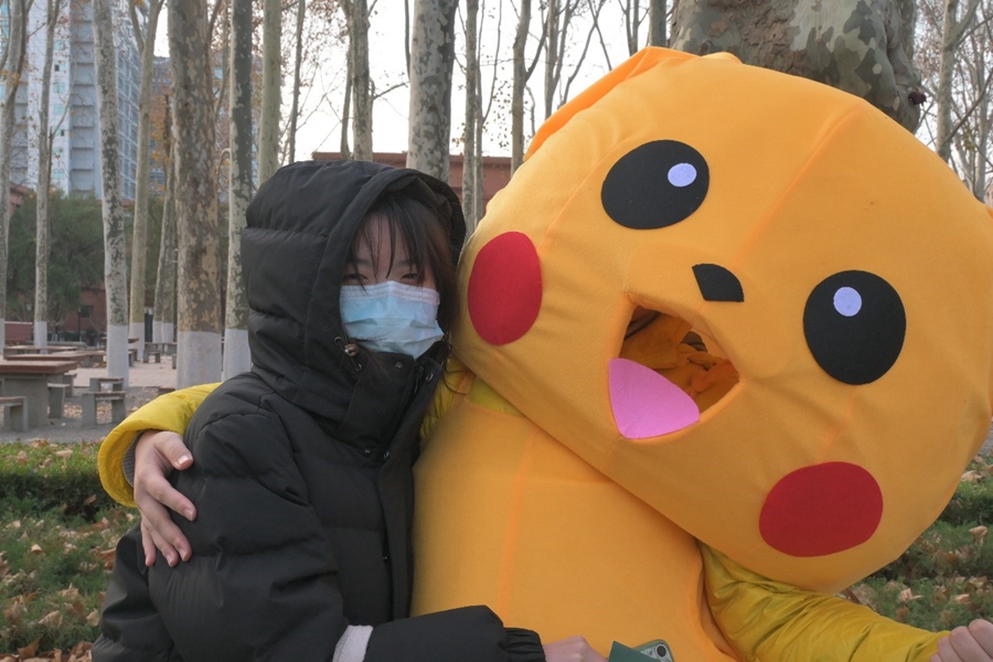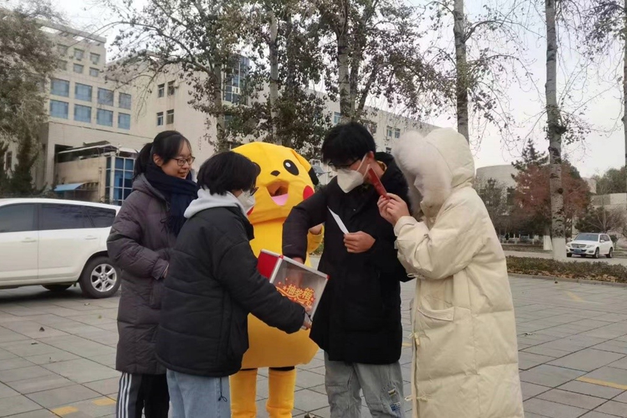 作为一个在今年九月刚刚成立的社团,心理协会始终在努力探索着自己的方向。我通过和社员们的交流讨论,发现大家不仅对于心理学知识感兴趣,也非常希望向校园里的人们传递来自朋辈的善意。于是,我们一同设计了“玩偶送祝福”活动,由装扮成玩偶的社员在校园中发放祝福明信片传递温暖。
