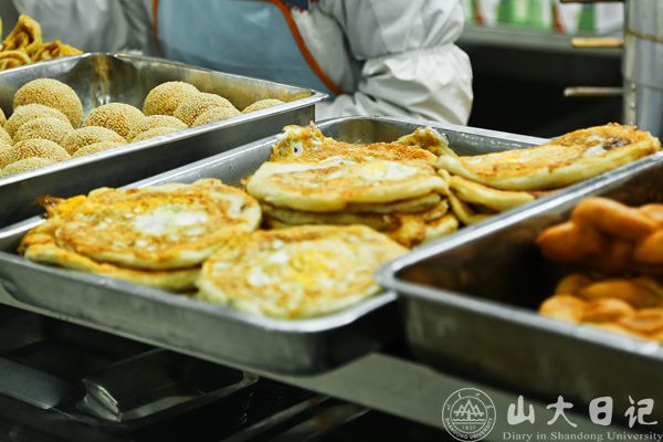 早上七点半,是食堂内人群涌动的时刻,队伍一直排到十几米长的依然是那卖鸡蛋饼的窗口。人们大抵是不愿意排长队等候的,但在鸡蛋饼这里却着实不一样。不管是上课快要迟到了,还是上班要赶时间了,总是不舍得搁下这一张金黄的鸡蛋饼,就如同割舍不下一颗踏实的心。鸡蛋饼给山大人带来的不仅仅是早餐里的“饱”,更多的是一种“习惯了的满足”。在山大,仿佛没有人会刻意的描述或者刻画这一张鸡蛋饼,就像空气,但它确实是已经带着它的品格融入到山大人的血液和精气神儿中去了,它是一种蕴藏着深厚文化的山东面食。