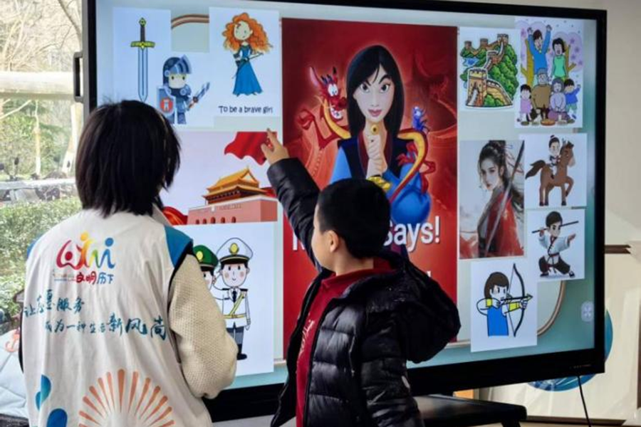 选择花木兰作为第一课的主题,其实是我们团队在筹备会上共同讨论的结果。在前期备课中,我们想过很多方案,就在讨论陷入瓶颈时,我提议以“用英语讲中国故事” 为课程主题,这一想法引起了团队的共鸣,花木兰的形象是一个勇敢、有担当的中国女性。用英语讲述她的故事,不仅能教孩子们语言知识,更能传递一份文化自信。