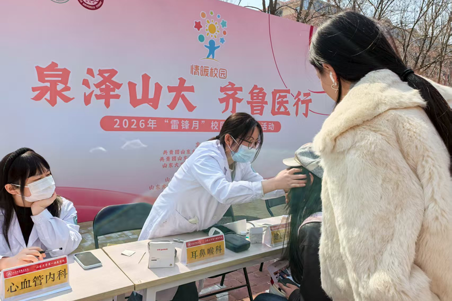 今天是一个特别的日子。作为山东大学齐鲁医学院耳鼻喉科专业研一的学生,我参与到由齐鲁医院(第一临床学院)组织的“泉泽山大,齐鲁医行”2026年雷锋月健康咨询活动。一天的义诊让我深有感悟,也对“医者”二字有了更深的理解。