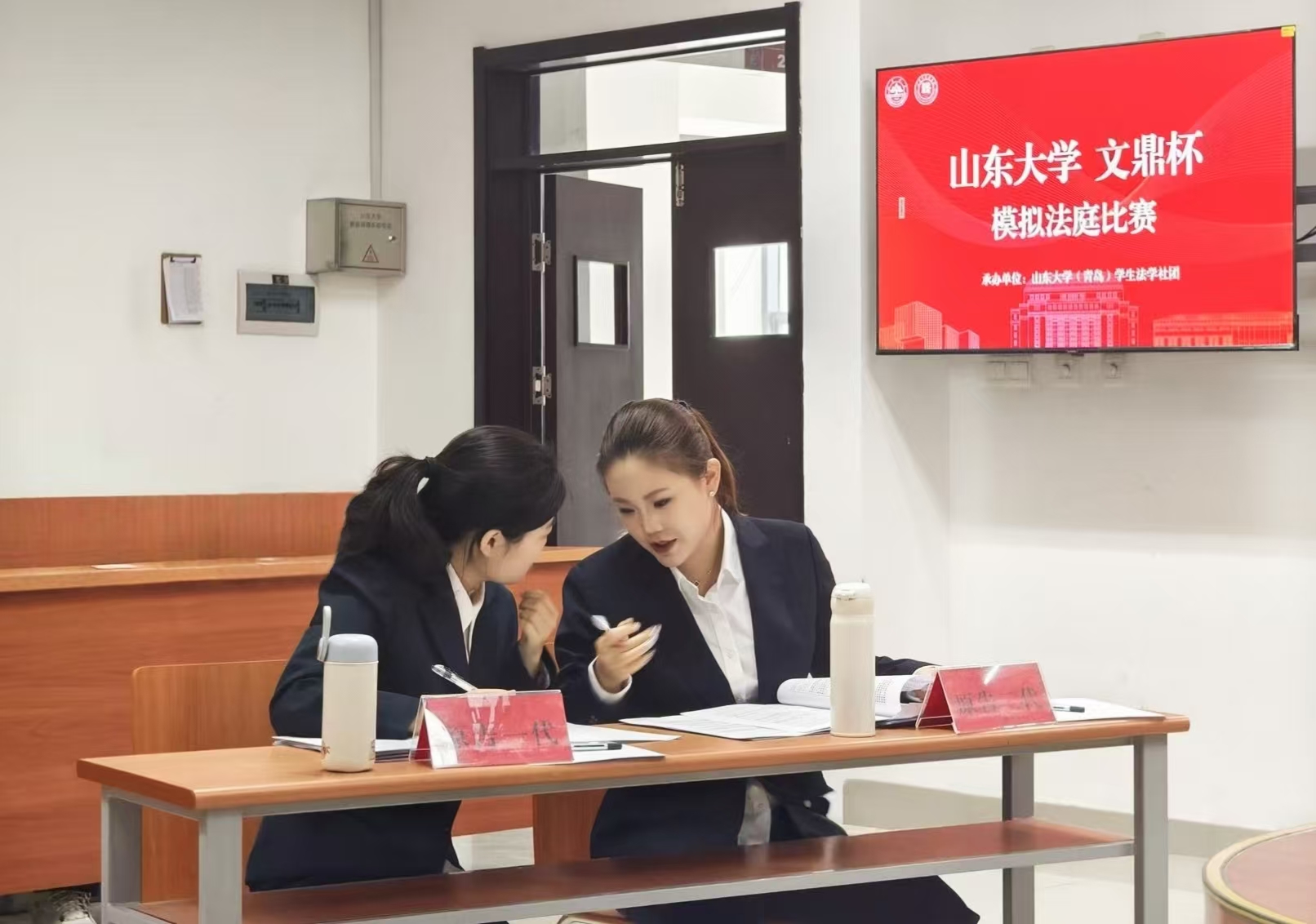这次参加“文鼎杯”的征程,是耿执学姐带着乔翊斐、王艾萌和我三个尚未接触过模拟法庭的新人,一步步摸索着走过来的。那些在华岗苑、振声苑的日夜,我们改了一稿又一稿的法律文书,学习了法庭礼仪的各种细节,在训练中我们记得最深的一句话就是:永远不做被动的辩解,要把庭审的主动权,握在自己手里。