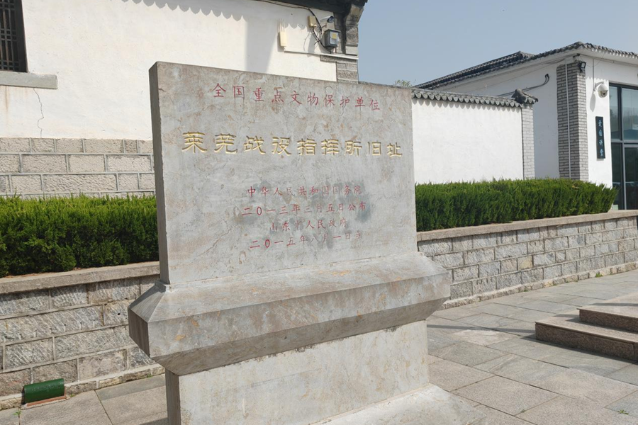 抵达目的地,一座古朴的四合院映入眼帘,石基、砖墙、灰瓦历经七十余载风雨,依旧沉稳庄严。这里曾是华东野战军司令部,陈毅、粟裕等将帅在此运筹帷幄,指挥了扭转战局的关键一战。院外,三位将帅的雕像巍然矗立,影壁墙上陈毅元帅的《莱芜大捷》瓷壁诗,笔力遒劲,诉说着那段波澜壮阔的历史。