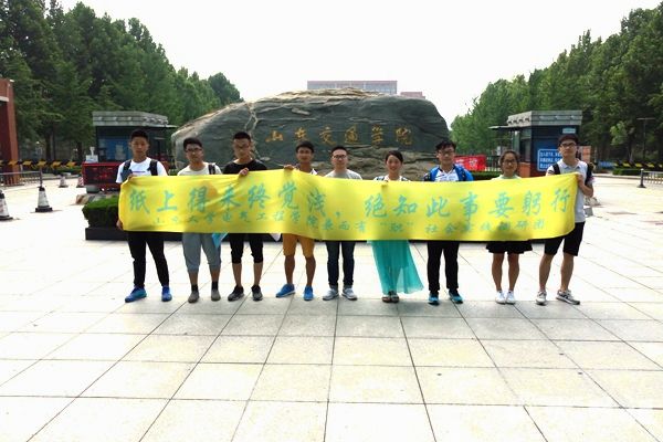 9点30分,我们驱车前往首个调研地点——山东师范大学,随后相继走进山东中医药大学、齐鲁工业大学、山东交通学院等高校实施调研。正值暑假之初,天朗气清,顺风和畅,校园内随处可见为即将到来的假期欢心雀跃的莘莘学子,让我们团队为开展问卷调查及纪实采访活动占尽天时地利人和。