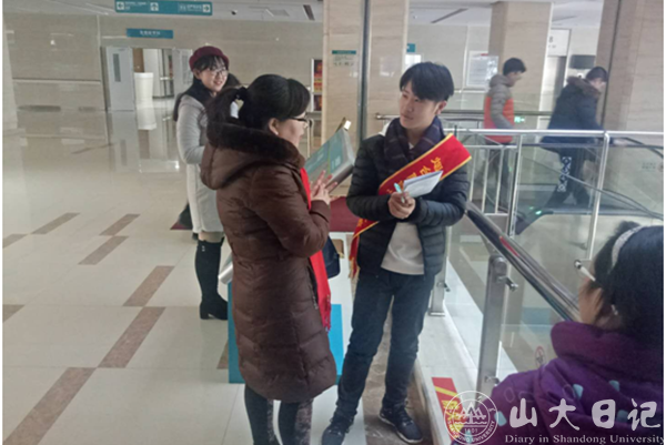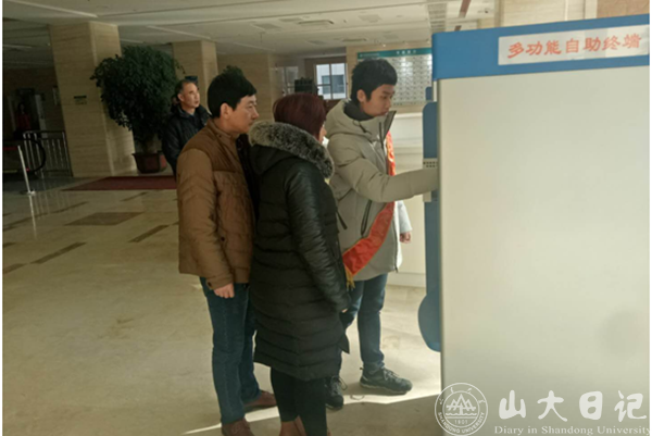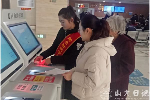 我所分配的工作是在三楼大厅医学检验科和医学影像科进行导医和帮助患者自助打印化验单和检查报告,但又不仅仅是如此。短短几分钟内我背过了医院五层楼科室的分布和各个卫生间的位置,以应对病人和家属的询问。多数人第一次使用多功能终端打印报告,又有很多年纪大的病人只能对着机器束手无策,我便一次次主动上前指导,看到站在大厅里一脸焦急的人便去询问有什么需要帮助的地方……佩戴着志愿者的绶带,仿佛是一种责任,想要尽力去帮助这些病痛的人,尽力去减轻他们的失意,带给他们一点力所能及的帮助和温暖。不过短短几小时便站得双腿酸疼、说得口干舌燥,大厅工作护士姐姐一看有闲就催我去休息,并且在我问她“你不累吗”的时候笑着说自己早就习惯了。