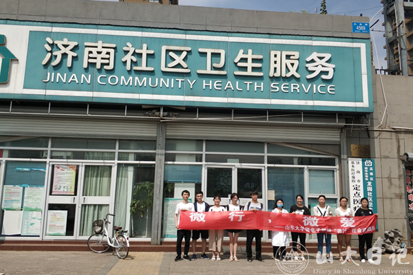 最后,成员们与医护人员一起在社区服务站前合影留念,并得到了她真诚的鼓励与支持,宣告了“微行计划”社会实践的首次访谈与开幕仪式的顺利开始。
