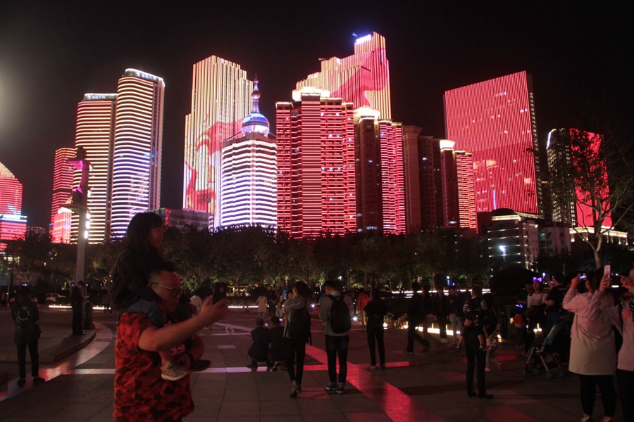 走下站台,熟悉的海风唤起了我对青岛的眷恋,漫步海边,远处的灯塔上,国旗飘扬,游客手举小旗合影留念,傍晚,沿海灯光秀又焕发起暑日上合峰会的荣光,当一座座建筑披上中国红,亮起国旗色;当人们不由自主将国歌唱响;当海面上的邮轮亮起爱我中华;那一刻,我的心跳加速,为自己身为中国青年而自豪,那一道靓丽的风景线,把幸福久久环绕……