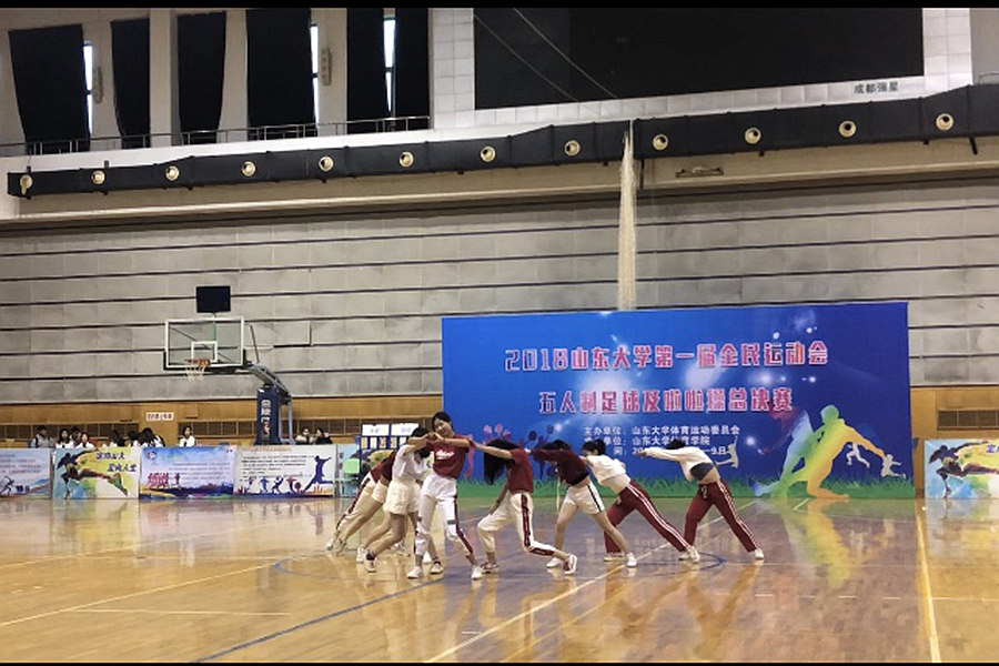 在预赛中,管理学院代表队(包括啦啦操、街舞、队长个人秀)夺得济南校区桂冠,将代表济南校区参加今天的决赛。参加这次决赛的有来自济南校区、青岛校区、威海校区的共8支队伍,啦啦操比赛与山东大学五人制足球比赛相互配合,交叉进行,同馆竞技。