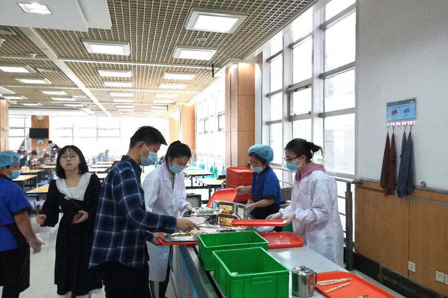 时间走到上午10点半,在经过餐厅阿姨手把手教学后,我站到了自己的工位开始工作。这个时候人还不多,我漫无目的地向餐厅望去,发现来吃饭的同学们都戴好了口罩,排队的时候也自觉互相间隔一米。其实第一次参与餐厅的志愿服务,说实话,我还是很紧张的,生怕自己做不好还给阿姨添麻烦,但是实际上,同学们来放餐具的时候,看到我们,还会贴心地给我说一声“谢谢”,阿姨也告诉我做得很棒,真是十足十的暖心啊!