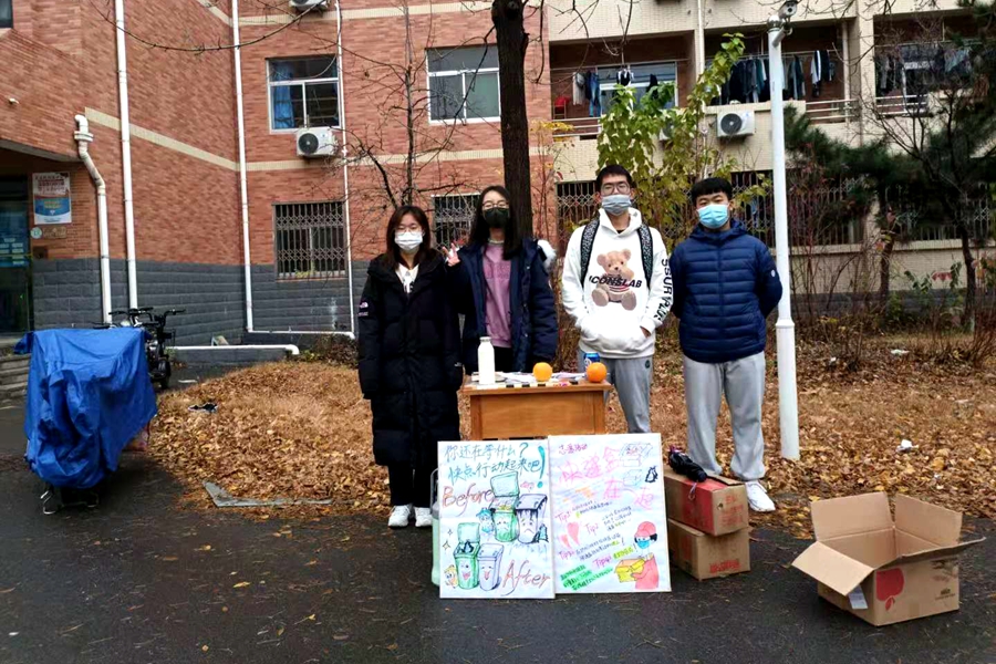 这次活动是我进入大学来参与举办的第一次志愿活动,希望通过这次活动可以减少校园中使用快递盒盛放生活垃圾的现象,这种行为既不利于学校物业工作人员进行快递盒的回收和再利用,也会在回收过程中给校园环境造成不良影响。