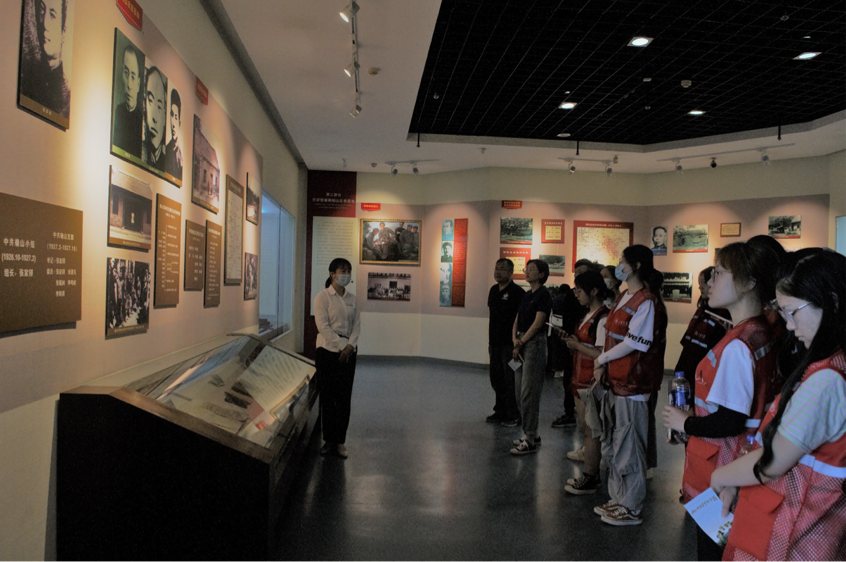 我们首先来到了确山竹沟革命纪念馆,学习党的光辉历程与优秀革命人物的光辉事迹。我们跟随讲解员姐姐的脚步,一步一步走进纪念馆的深处,了解到学党史并不是孤立的,而是要和了解掌握国家大事、时政要闻结合起来,讲党性要和立足岗位、履职尽责结合起来。讲解员姐姐围绕思想建设、党性修养和自觉行动三方面内容展开了详细的讲解,并举实例论证。
