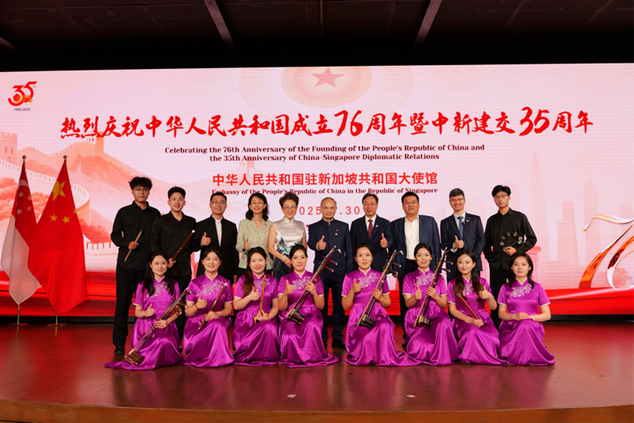 应中国驻新加坡大使馆邀请,山东大学民族乐团在结束了2025年7月的东南亚巡演之后再度抵达狮城,参演“庆祝中华人民共和国成立76周年暨中新建交35周年”庆典晚会。这一次,我们带着精心打磨的“中国声音”,要以音符为笔,讲述独属于我们的文化故事与民族情感。