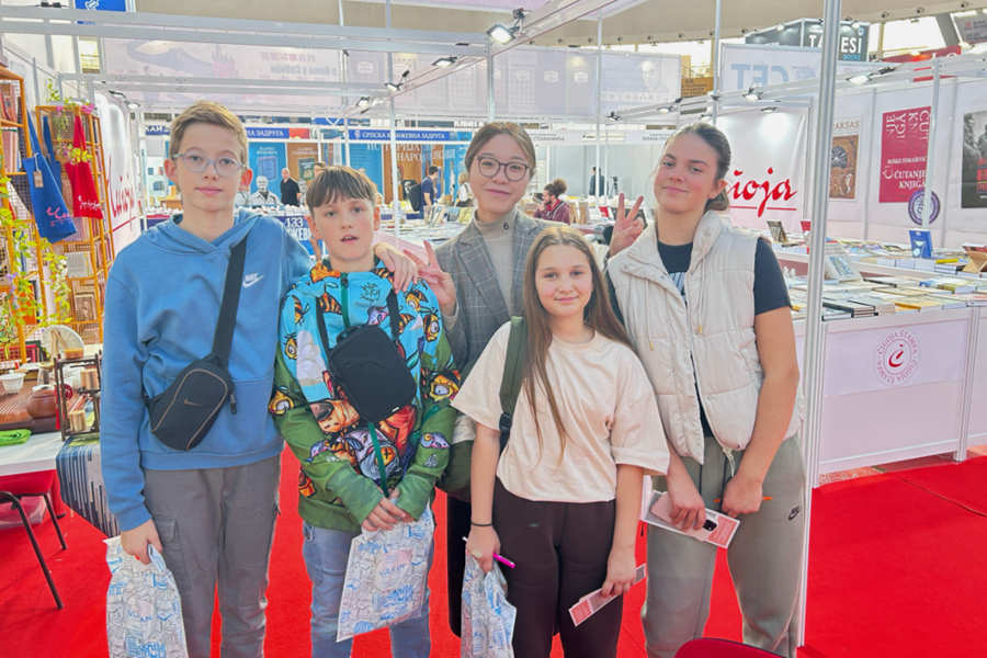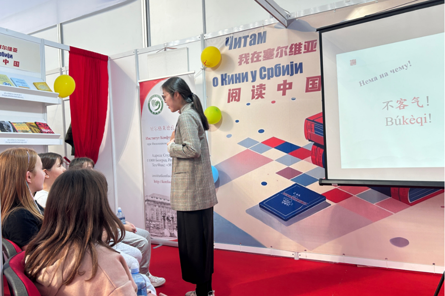 10月底,中国驻塞尔维亚使馆与契戈亚出版社在贝尔格莱德国际书展共同设立“我在塞尔维亚阅读中国”图书专区,并举办“中国日”主题活动。书展现场,贝尔格莱德孔子学院特别设立“汉语体验课”互动专区,作为孔子学院的志愿者,能在现场沉浸式感受这场文化盛宴,我倍感幸运与欣喜。
