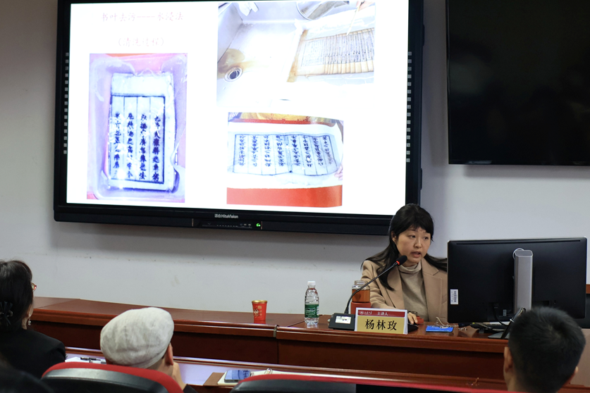 杨林玫老师从“什么是古籍”这一基本定义开始,娓娓道来,配合一张张精心准备的案例图片,带领我们一同进入了那个与时间赛跑的修复世界中。她强调古籍修复不仅仅是“修书”,也是一场与历史的对话,每一步都需严谨细致,心怀敬畏。