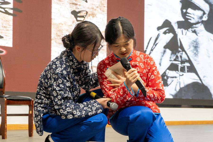 还记得第一次排练时,我们陷入了瓶颈:如何在短短五分钟内,既展现革命先辈的家国情怀,又凸显山大学子的青春活力?我们围坐在文学楼教室里热烈讨论,编剧同学逐字修改剧本,答题组的同学背诵抗战历史资料,道具组的同学手工制作旧报纸、家书等道具。