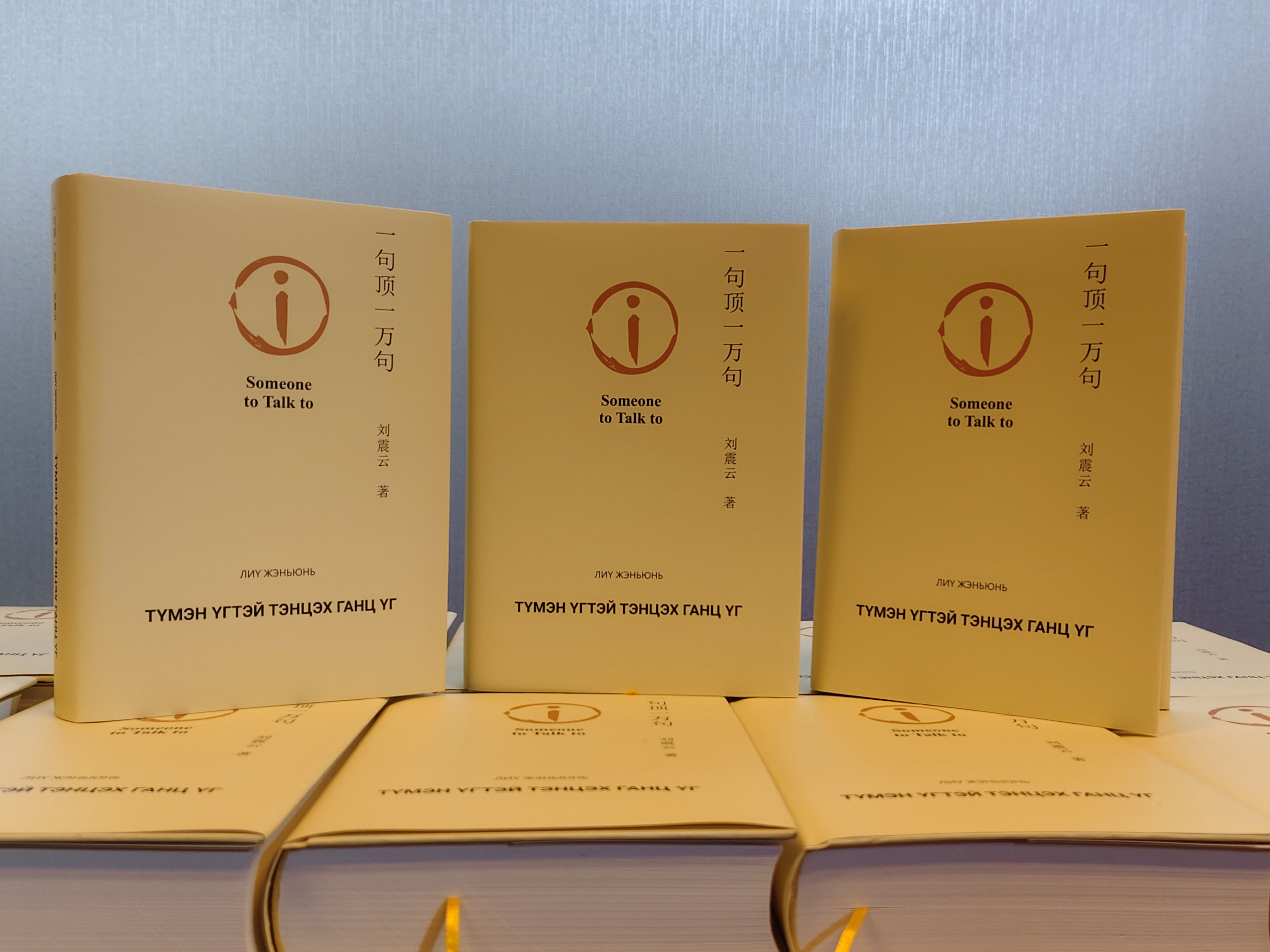 仪式在热烈的掌声中拉开帷幕。中国驻蒙古国大使馆文化参赞、乌兰巴托中国文化中心主任李峙先生在致辞中高度评价了中蒙两国在文化互鉴上取得的丰硕成果;随后,蒙古国著名汉学家、蒙古国立大学孔子学院翻译研究中心主任、《一句顶一万句》译者其米德策耶教授发表致辞。他谈到,刘震云先生著作蒙文版的问世,深受蒙古国读者欢迎,是近年来中蒙两国文学交流的一个亮点。看着这位满头银发、精神矍铄的老教授,我心中涌起由衷的敬佩。正是像他这样精通中蒙文化的学者,日复一日地伏案耕耘,才让中国当代文学的声音得以在草原上回响,才把中蒙文化交流的桥梁扎得如此深稳。