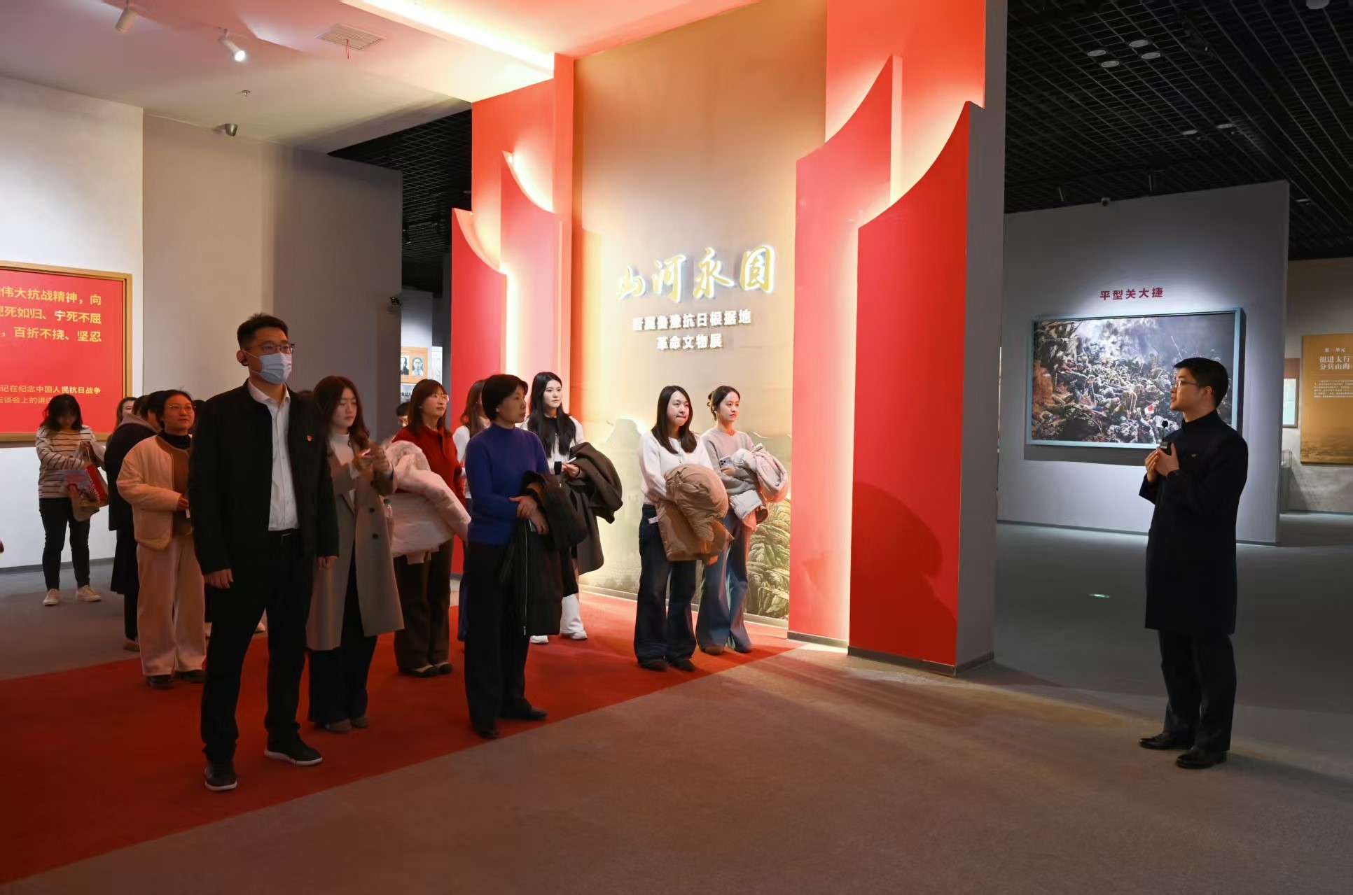 走进博物馆大厅,喧嚣被过滤在身后,一种沉静的氛围自然地包裹上来。在讲解员的引领下,我们步入了“山河永固——晋冀鲁豫抗日根据地革命文物展”。展览被分为四个篇章,“山河染血”“山河不屈”“山河重整”“山河铭记”,玻璃展柜里,褪色的军装、破损的油灯、模糊的信笺、生锈的枪械……它们沉默着,却仿佛在讲述最汹涌的故事。看到展墙结尾处那句话:“我们纪念战争,是为了远离战争;我们纪念胜利,是为了珍爱和平”,历史的重量,沉甸甸地压在心口,又化作一股向上托举的力量。