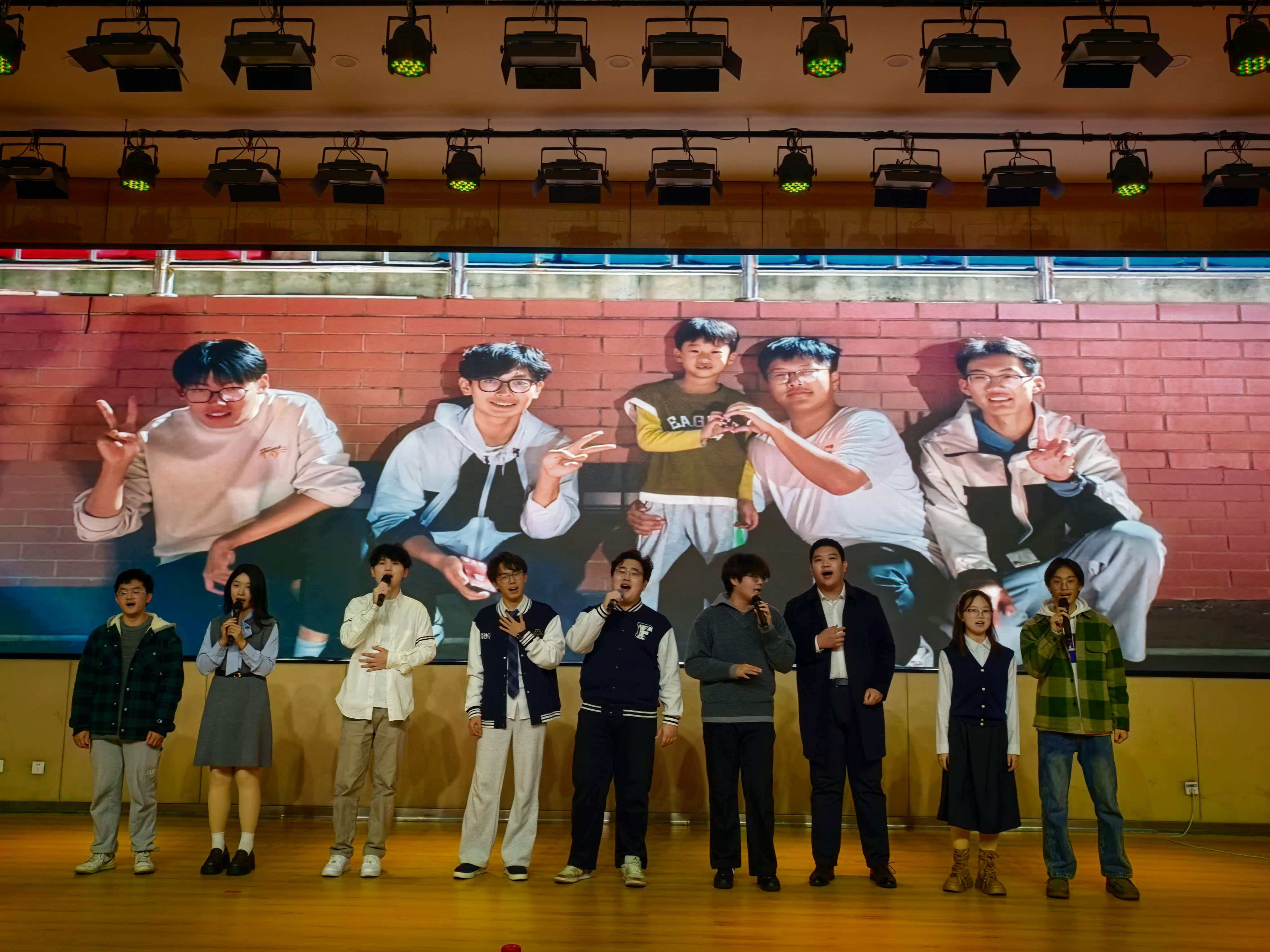 在学院领导的致辞环节,辛公明书记的殷切嘱托和暖心寄语饱含深深期许,温暖了学子的心。不久,便轮到我们2024级班委代表表演的节目《你从未离去》。尽管在表演前已经排练了许多遍,但当聚光灯落在身上时,我还是有些许紧张,生怕忘记哪一句歌词。等待前奏时,我瞥见台下第二排坐着的、刚获得能动榜样人物的张学长,冲我比了个口型“稳住”;还有我们班的男生,举着手机闪光灯不停晃动。我心里升起一股暖流。