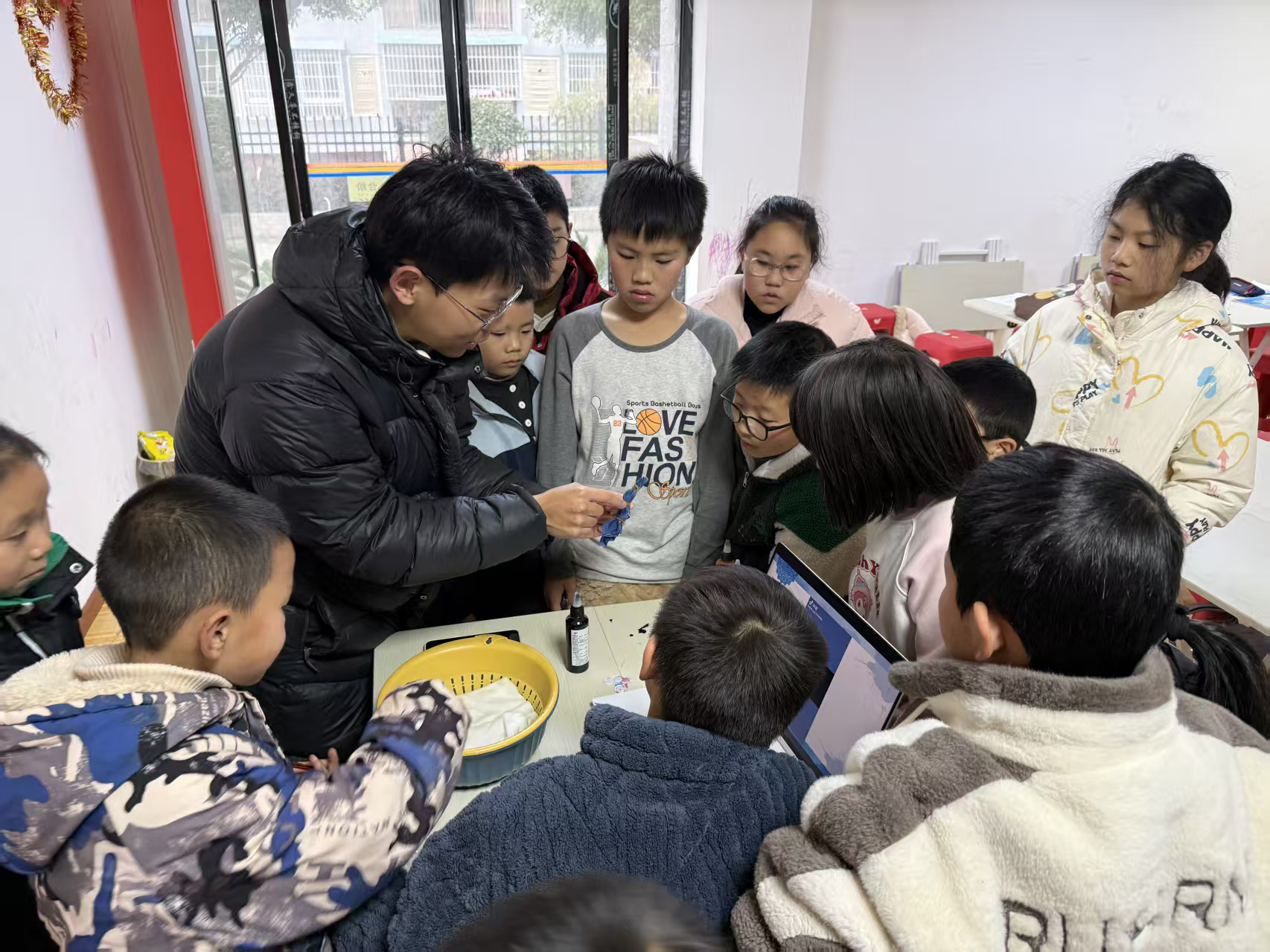看着天真烂漫的孩子和五彩斑斓的扎染作品,我们教孩子扎染,为苗族传统文化固根;孩子们以纯真相伴,引我们不忘支教初心。支教队的日子平凡充实,我们以协作传播非遗文化,以真诚守护乡土稚童,用微光照亮他们的童年。