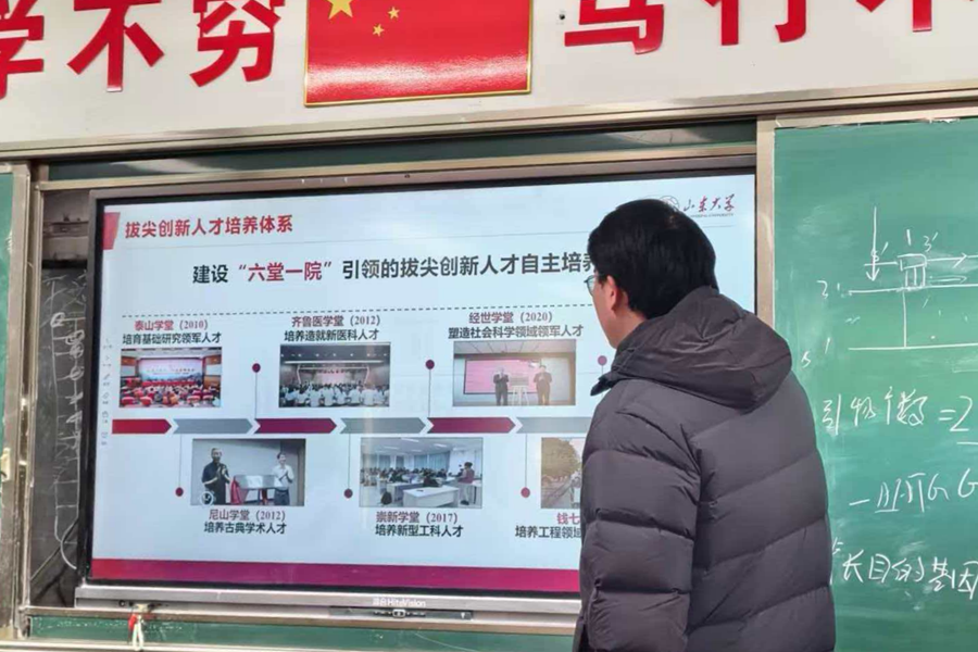 面向学弟学妹进行宣讲,则让我们对自己山东大学学生的身份多了一重审视与思考。我们感佩成仿吾校长的赤诚,崇敬闻一多先生的无畏,欣赏潘承洞院士的睿智,山东大学深厚的历史文化底蕴与严谨的学术研究氛围让同学们心驰神往。从知新楼的恢弘气势,到音乐厅的盛大交响,从稷下广场风铃清越,到大成广场灯火通明,再到青杨路、翠桐路、银杏路的秋日风光,山东大学优美的校园也给同学们留下了深刻印象,使我们倍感自豪。
