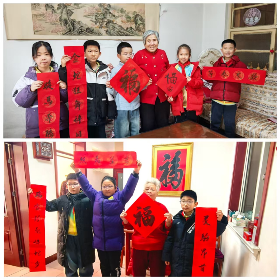 然而,今天最触动我的瞬间,发生在活动之后。孩子们捧着自己最满意的作品,组成了一支“送福小分队”,去探望社区的独居老人。我们来到牛奶奶家,孩子们齐声说:“奶奶,这是我们自己写的福字,祝您新年快乐!”牛奶奶接过那张笔法稚嫩却充满诚意的红纸,用手轻轻摩挲着,脸上洋溢着幸福的笑容。我们写下的不仅是汉字,更是连接两代人的温情与陪伴,文化的传承,就在这墨迹未干的“福”字与真挚的祝福之间,悄然流淌。