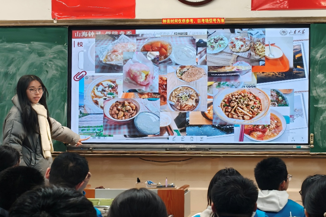 宣讲按部就班地展开,从百廿山大的历史底蕴,到具体的招生政策、校园生活,我们努力将真实的山大铺展在他们眼前。我注意到,当讲到“校训精神”与“学科实力”时,许多同学停下奋笔疾书的手,饶有兴致地抬起头看向讲台;而当分享“如何提高学习效率”时,他们低头记录的样子又格外认真。那一刻我明白,我们不仅需要在他们心中埋下名为梦想的种子,更要将实现梦想的现实广阔道路展现在他们眼前,告之以具体实现的方法。