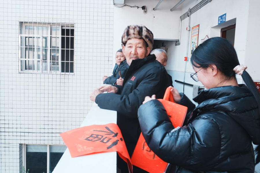 其后,我们迅速分工,部分队员带着一部分孩子包饺子,我则带领孩子们送春联。在送春联之前,我鼓励孩子们:“主动和老人们聊聊,让他们感受你们的关心。”起初孩子们还有些拘谨,可没过多久,便与老人们熟络起来。让我最动容的是一位说话含糊的老人,他一直用手势示意我们把春联贴在门上,当我们读懂他的意思并贴好后,老人脸上露出了欣慰的笑容,不停地用手势向我们道谢,那无声的暖意,深深烙印在每个人心中。