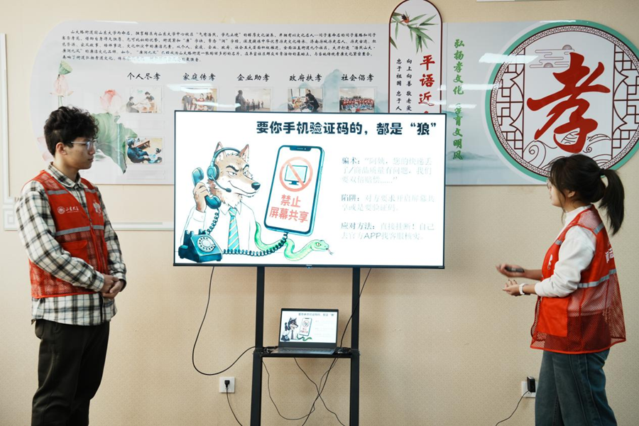 为真正走进居民心里,我们改用“现身说法”的共情讲解。我们把自己和家人亲历的故事娓娓道来——长辈被小礼品吸引、不慎踩入会员充值圈套,自己曾遭遇天价维修诈骗等真实经历,用贴近日常的场景,一点点揭开诈骗背后的套路与真相。在讲解虚假旅游、虚假快递骗局时,我和队友化身演员,以生动情景剧还原骗子利用信息不对称设套的完整过程。轻松真实的表演既接地气又有警示力,老人们看得频频点头,不少人主动开口分享自己的相似经历,现场从单向讲解变成双向交流。