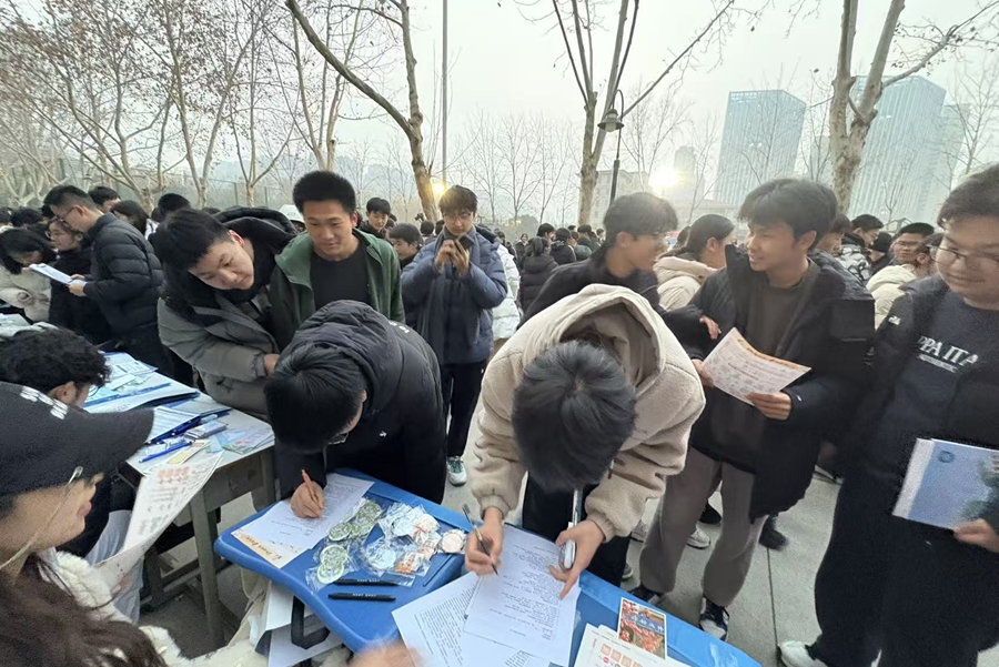 冬风已不似前几日那般凛冽刺骨,校园主干道的蓝色咨询摊位前,学生们络绎不绝,同学们纷纷被小礼品所吸引,关注山东大学各项特色。参与咨询的学生百余人次,我们针对分数线、转专业、校园环境等高频问题耐心为他们解答。