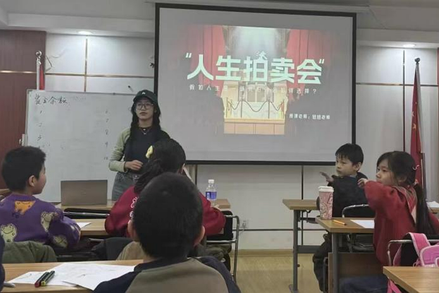 午后的阳光愈发温暖,兴趣课的时光总是充满惊喜。第一节是妞妞老师带来的“人生拍卖会”,孩子们手里拿着老师分发的“虚拟货币”,脸上满是郑重。当“健康”“友谊”“知识”“勇气”这些拍卖品逐一亮相时,课堂瞬间热闹起来。有的孩子果断出价,只为拍下心仪的“人生财富”;有的孩子则谨慎思考,在不同选项间权衡。拍卖结束后,妞妞老师引导孩子们分享自己的选择,简单的话语却让我深受触动。这场特殊的拍卖会,不仅让孩子们学会了取舍,更让他们对人生中珍贵的事物有了初步的认知。