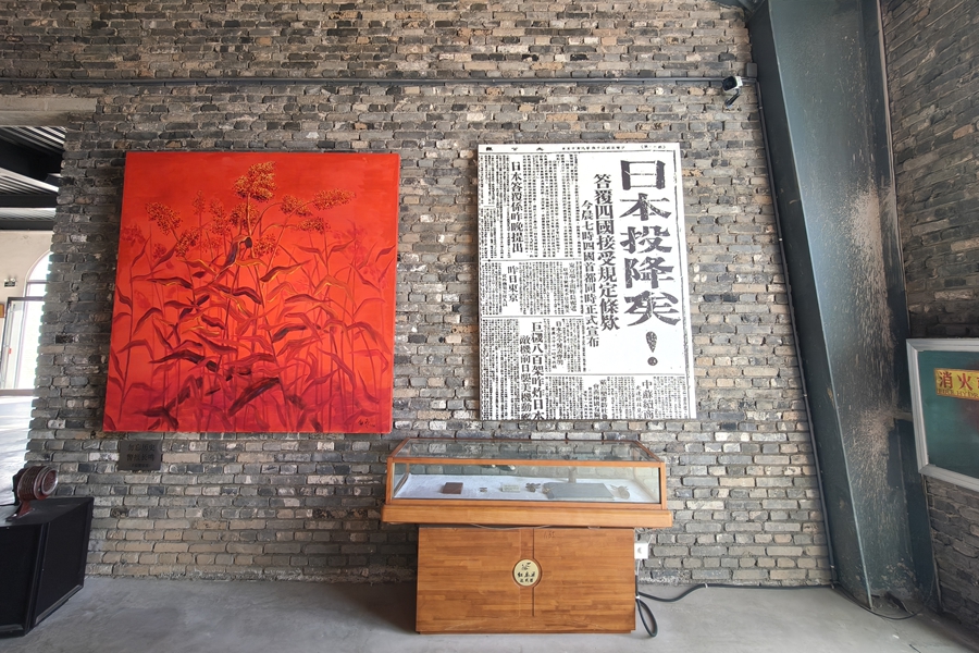 东北乡缺少武器补给,却从不缺少甘愿以身许国的人民。历经数载抗争,中国人民终于驱散了侵略者带来的黑暗,成为国家的主人。展馆尽头,有一张刊登着日本投降的巨大报纸照片和一幅红高粱油画。红色的高粱如同灼灼的火焰,带着不屈的原始生命力在风中摇曳,仿佛在告诉这片土地上的人们——我们胜利了!