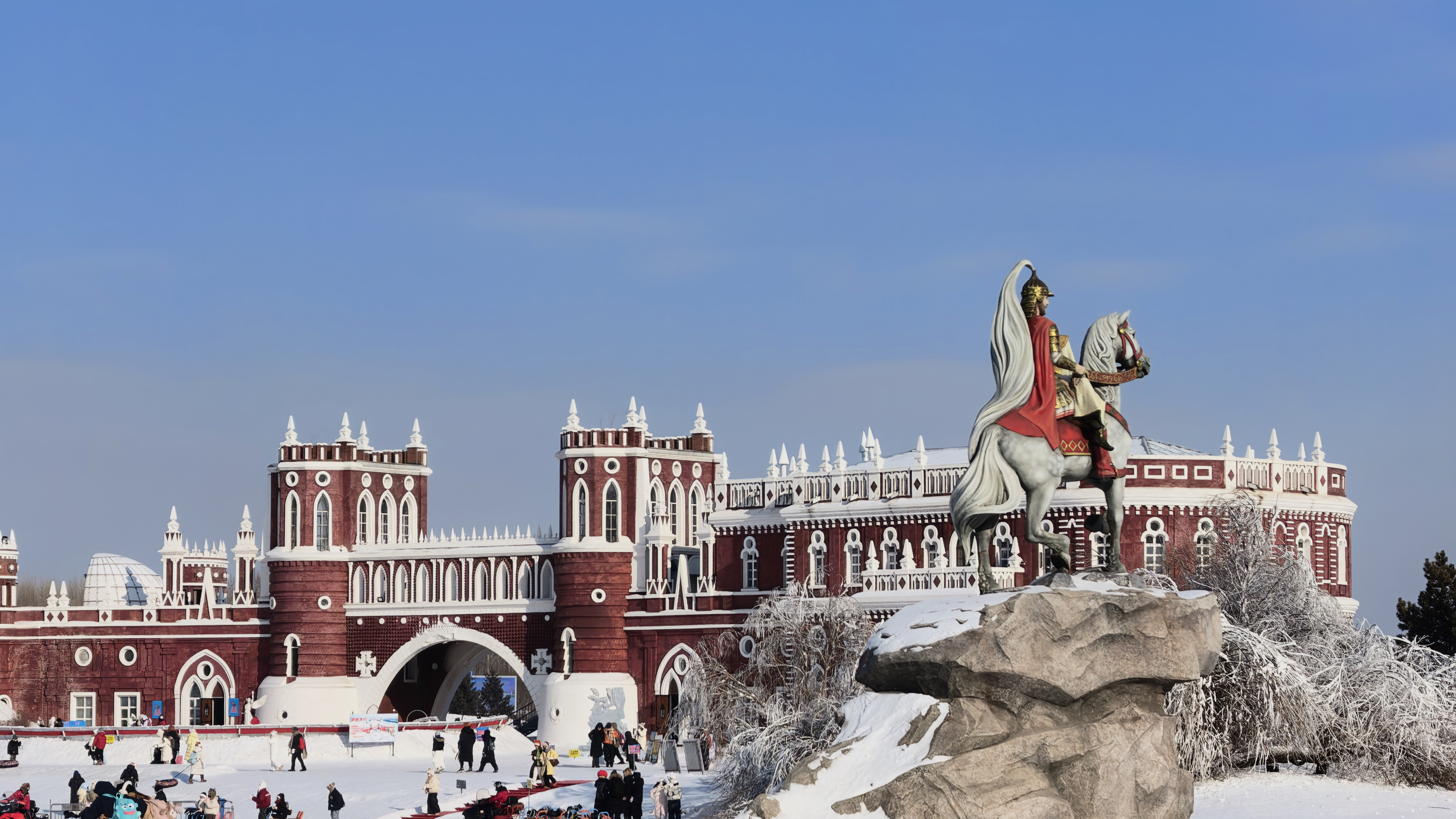 一进庄园,浓郁的俄式风情便扑面而来。精致的穹顶、原木色的建筑、皑皑白雪与湛蓝天空相映,宛如一幅徐徐展开的油画。我直奔圣尼古拉建筑艺术馆。这座全木构建筑堪称奇迹,无钉无铆却历经岁月依然稳固,穹顶雕花细腻精巧,阳光透过窗棂洒入,静谧而庄严。行走其间,仿佛能触摸到百年前的建筑智慧。在历史与工艺的交融中,我深深折服于人类的匠心与创造力。与建筑的厚重不同,普希金展览馆充满了诗意与温柔。诗人的雕像静静伫立,泛黄的书籍、经典的诗句、生动的图文介绍,将俄罗斯文学的浪漫与深情娓娓道来。那些跨越语言与时空的文字,让我感受到文学无国界的魅力,也在心底种下了对诗意生活的向往。