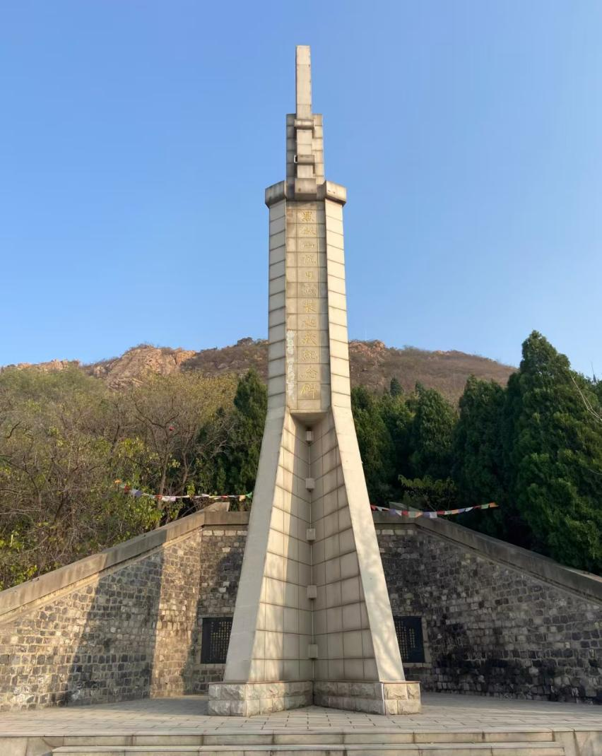 行至山腰,黑铁山抗日武装起义纪念碑赫然矗立。花岗岩筑就的碑体呈双步枪并立之形,顶端刺刀直指苍穹。徐向前元帅亲笔题写的碑名鎏金生辉,庄严肃穆,摄人心魄。立于碑前,细读碑文,1937年那个寒冬的壮烈场景缓缓铺展:日军铁蹄踏碎齐鲁大地,长山中学校长马耀南,携手姚仲明、廖容标等中共志士,于12月26日在太平庄小学集结百余名师生与抗日骨干,高举义旗,成立山东人民抗日救国军第五军,这便是震惊齐鲁的黑铁山抗日武装起义——山东抗日史上三大起义之一。
