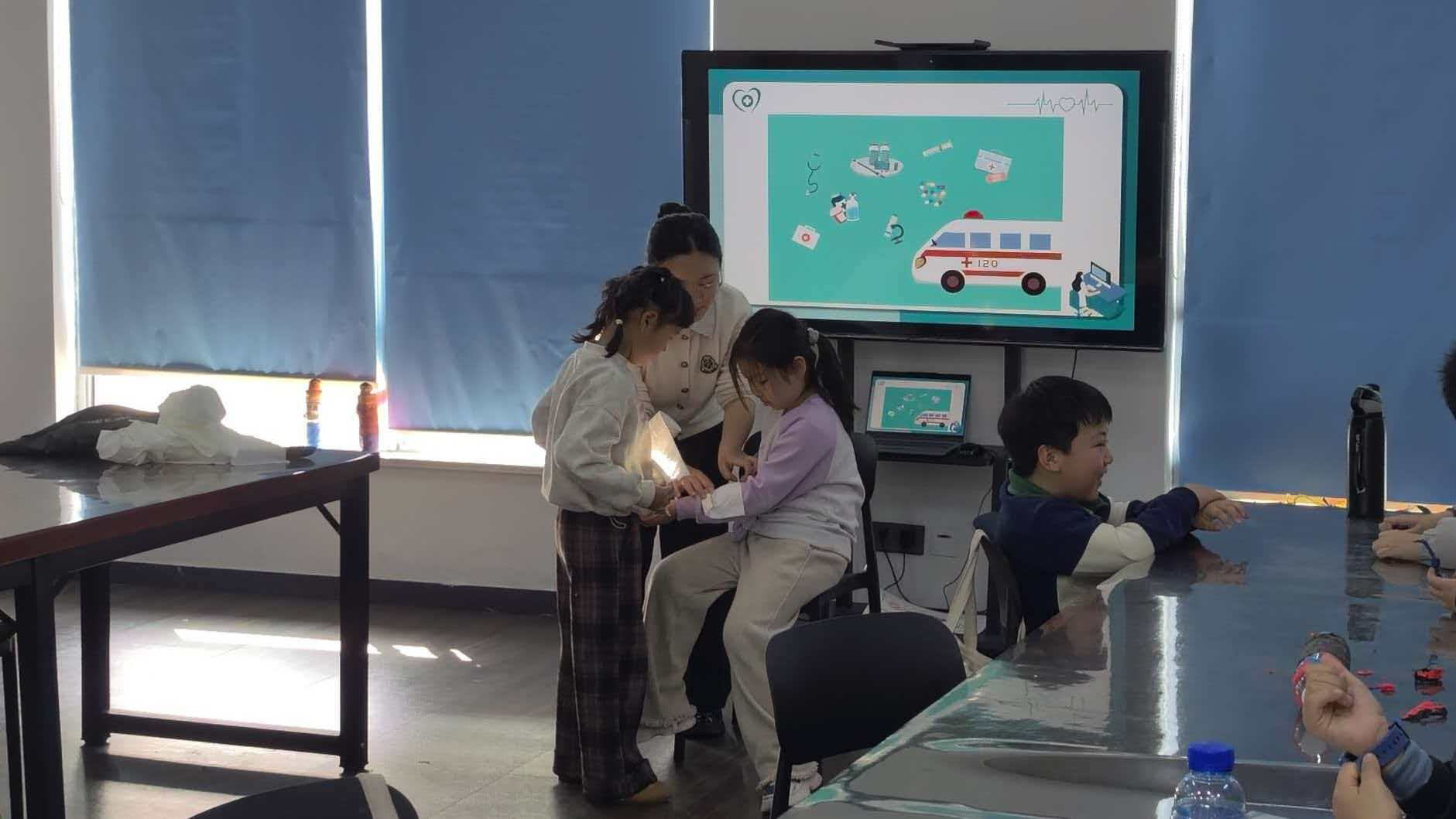 一节课结束,课间时孩子们久久围在我们身边,希望学习更多的关于急救的小知识。同学们请求:“老师,能不能再教我们几个急救小方法?”面对同学们对于知识的渴求,我和队友爽快答应。我们先是通过电脑向同学们播放急救方法教学视频,随后又通过讲解和实际操作,向同学们展示了更多实用的急救知识。
