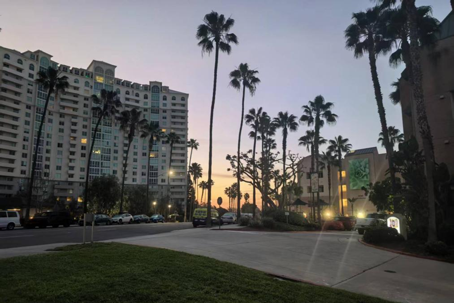 过程进行得远比想象中顺利。我跟着攻略完成转机、入境,抵达圣地亚哥后,搭乘穿梭巴士与轻轨前往公寓。从零下的济南深夜来到二十多度的加州,热烈的阳光、挺拔的棕榈树、澄澈的蓝天,瞬间构成独属于这里的浪漫。我换上夏装去校园踩点,恍惚间才真切意识到:孤身一人的我,真的站在了万里之外的美国。