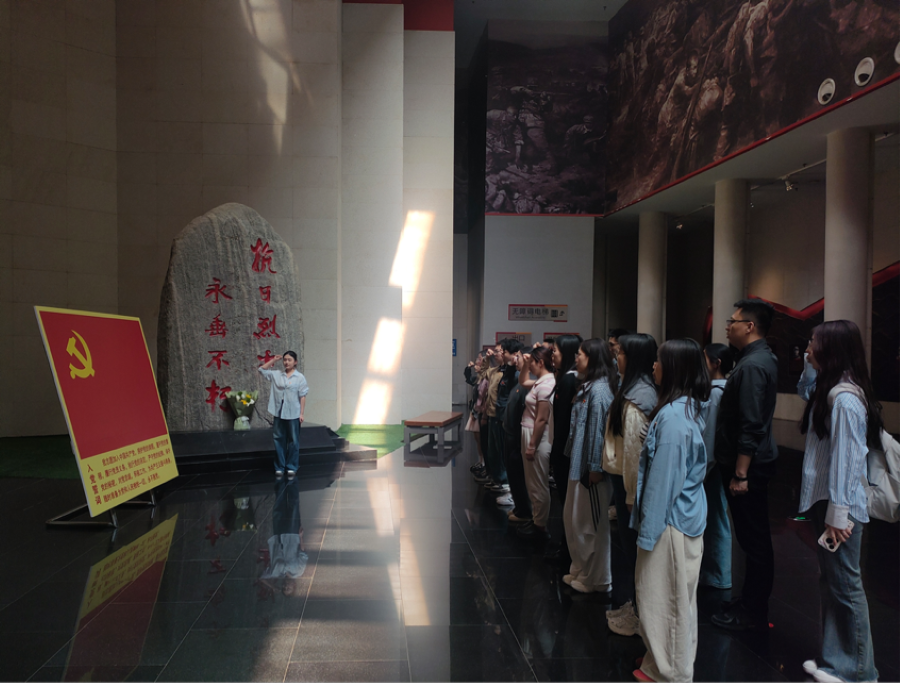 参观结束后,我们整齐列队,面向党旗,举起右拳,重温入党誓词。那一刻,耳边是春风,眼前是党旗,身旁是同样神情庄重的同志们,我感到誓词中的每一个字都像有了具体的重量。站在先辈们曾经用生命写下答案的土地上,我的心是沉甸甸的。