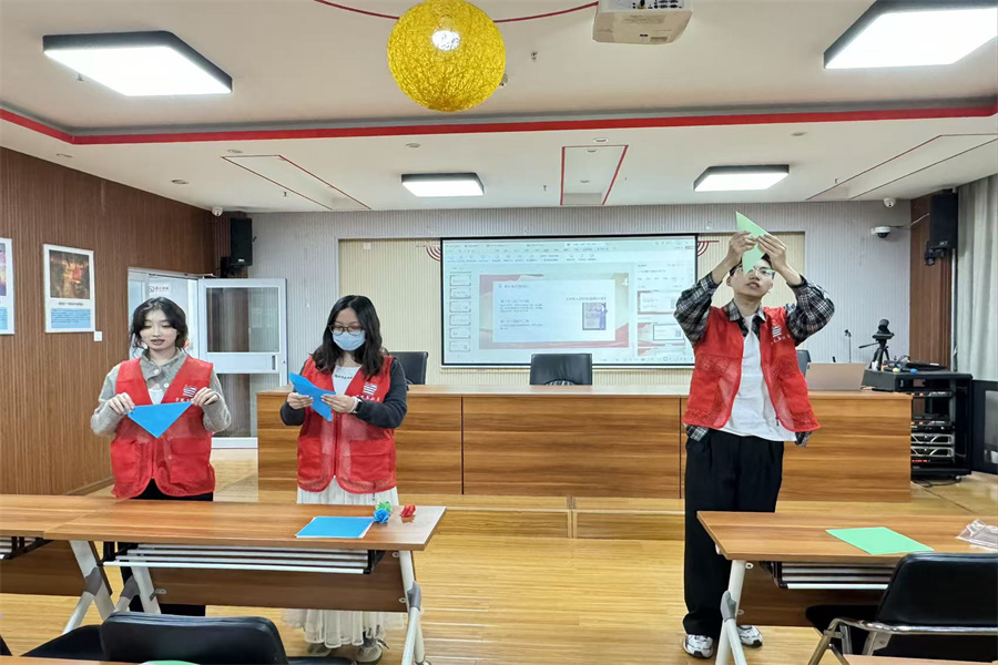 活动开始前,我们志愿者团队做了充分准备。为了能更好地指导社区居民折纸,我们提前搜集了多种折纸教程,从基础的爱心、玫瑰花,到灵动的千纸鹤,大家聚在一起反复练习,互相纠正折法,力求每一个步骤都精准流畅,不出现丝毫差错。我们还精心挑选了色彩鲜艳、质地柔软的彩纸,搭配上安全便捷的剪刀和胶水,提前和社区工作人员沟通对接,只为让这次活动能顺利开展,给社区居民带来一段愉快的时光。出发前,大家脸上都满是期待希望能用自己的小小行动,为社区增添一份温暖。