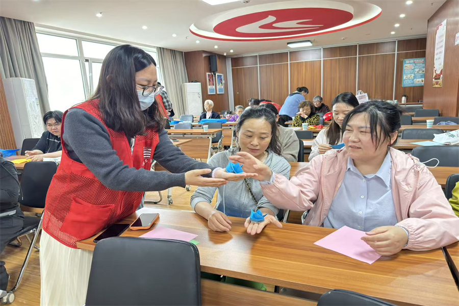 抵达百花社区活动室后,我们迅速分工协作,有条不紊地布置场地,将提前准备好的折纸材料一一摆放整齐。不一会儿,社区的居民们就陆续来了,有白发苍苍的老人,有活泼可爱的小朋友,还有热情爽朗的叔叔阿姨。我们主动上前打招呼,用亲切的话语迎接每一位参与者,瞬间拉近了彼此的距离,现场的氛围也变得轻松融洽起来。作为志愿者,我化身“折纸老师”,一对一地为居民们讲解折纸技巧。面对动作迟缓、记不住步骤的爷爷奶奶,我耐心地一遍又一遍重复,轻轻帮他们抚平彩纸的褶皱,仔细整理每一道折痕,耐心解答他们的每一个疑问。看到充满好奇心的小朋友,我陪着他们大胆发挥创意,鼓励他们在传统折法的基础上加入自己的想法,看着一张张普通的彩纸在他们手中变成精致灵动的作品,我心中也满是欢喜。活动现场,欢声笑语不断,大家一边折纸,一边畅谈生活趣事,每一件折纸作品,都承载着大家的美好心愿,也传递着温暖。