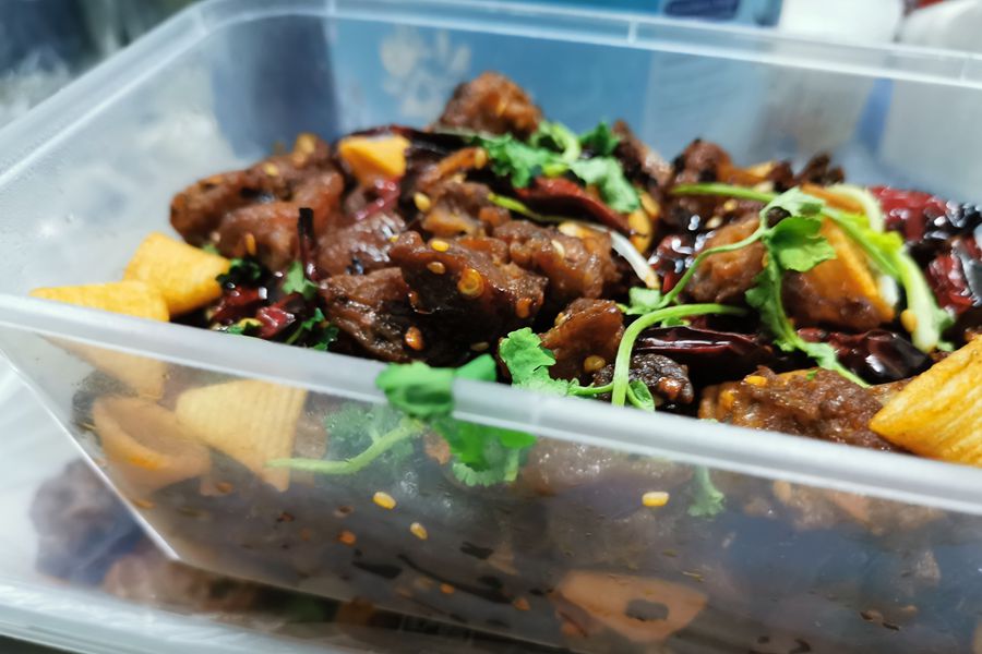 舍友给我们带的她妈妈亲手做的辣子鸡
