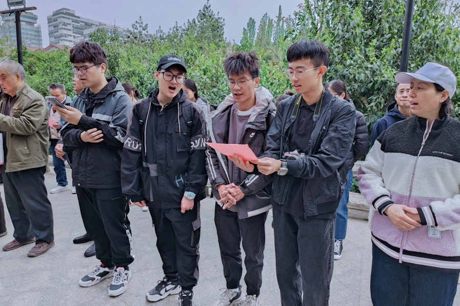 早上八点,我们在中心校区北门集合,共同前往解放阁。九点,东仓社区党委组织大家到解放济南战役革命烈士纪念碑开始活动。参与本次活动的主要是社区的老党员,他们对我们的到来表示热烈欢迎,我们也非常荣幸能有这次机会来学习。活动中,社区的党员致悼念词,表达了对革命先辈的崇敬和缅怀。随后我们依次为革命先辈献花,默哀一分钟,向纪念碑三鞠躬,表达我们对先辈们深深的怀念。然后,社区的党员带领我们一起唱了《我和我的祖国》和《歌唱祖国》这两首爱国歌曲,大家的声音富有激情和感染力,脸上洋溢着一种骄傲与自豪,唱出了对祖国、对人民的无限热爱和忠诚。与会人员在解放阁附近自由活动,互相交流分享本次活动的感受和心得。