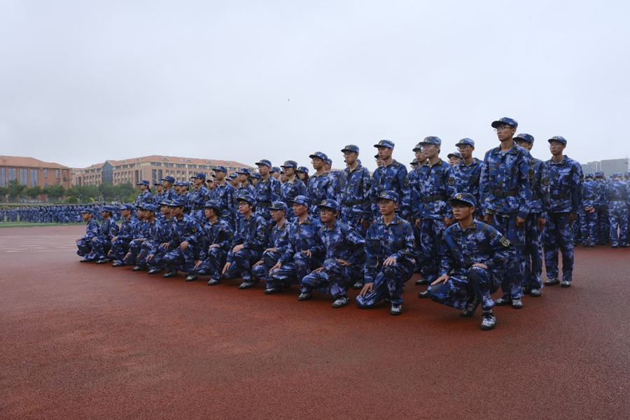 雨滴洒在脸上,带给我们一丝清凉和舒爽。我们洒脱地迎接雨水的洗礼,体会到了雨水给予生命的滋润和力量。身上的汗水与雨水融为一体,化作奋进的动力。在这片飘洒的雨幕中,我们的队列依然整齐划一。我们身姿笔直,目光坚定,在小雨中继续前行,每一滴雨水都见证着我们的顽强意志和坚韧品质。在青岛校区的军训期间,我们立志要成为顶天立地的战士,不论风雨,都将奋勇向前。