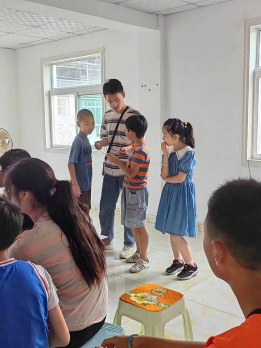 我们的支教内容主要分为两个部分。上午8点至11点进行素质拓展、兴趣培养课,主要针对三年级到六年级的同学,队员们带孩子们云游香港、了解大学、做趣味小实验、了解甲骨文、剪纸等,课上孩子们积极参与互动,取得了不错的支教效果。课间,队员们带着孩子做小游戏,例如你画我猜、唱歌、击鼓传花等,孩子们笑声不断,欢乐无穷。15点至17点进行课业辅导,在报名的同学中,小学三年级到初二的学生全方面覆盖。支教小队登记上孩子们的年级、年龄以及想补习的科目,团队负责人根据支教成员的专业和擅长科目为孩子们搭配合适的队员,为孩子们答疑解惑,传授学习方法,巩固知识点,解决孩子们学习上的问题。在每天空余的时间中,有空闲的队员会进行实地走访,走进当地,了解当地民风习俗。