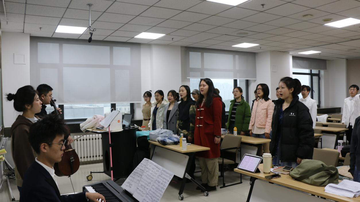 为了能在舞台上呈现最完美的作品,我们乐器小分队常常在集体训练结束后自觉留下来加练,强化肌肉记忆。夜色中的琴房里,我们一遍遍重复着相同的段落,直到每个音符都像是从心底自然流淌而出。那些相伴奋斗的时光,那些相视而笑的瞬间,早已超越了单纯的排练,成为我们共同珍藏的记忆。