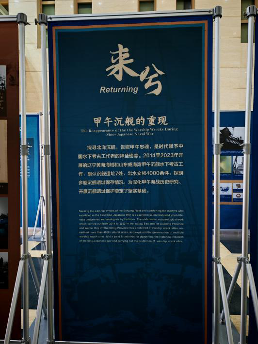 这次展览主要分为“归去——北洋海军的兴衰”“来兮——甲午沉舰的重现”“传承——水下遗产的守护”三个部分,66面展面高清明了,观感甚好。