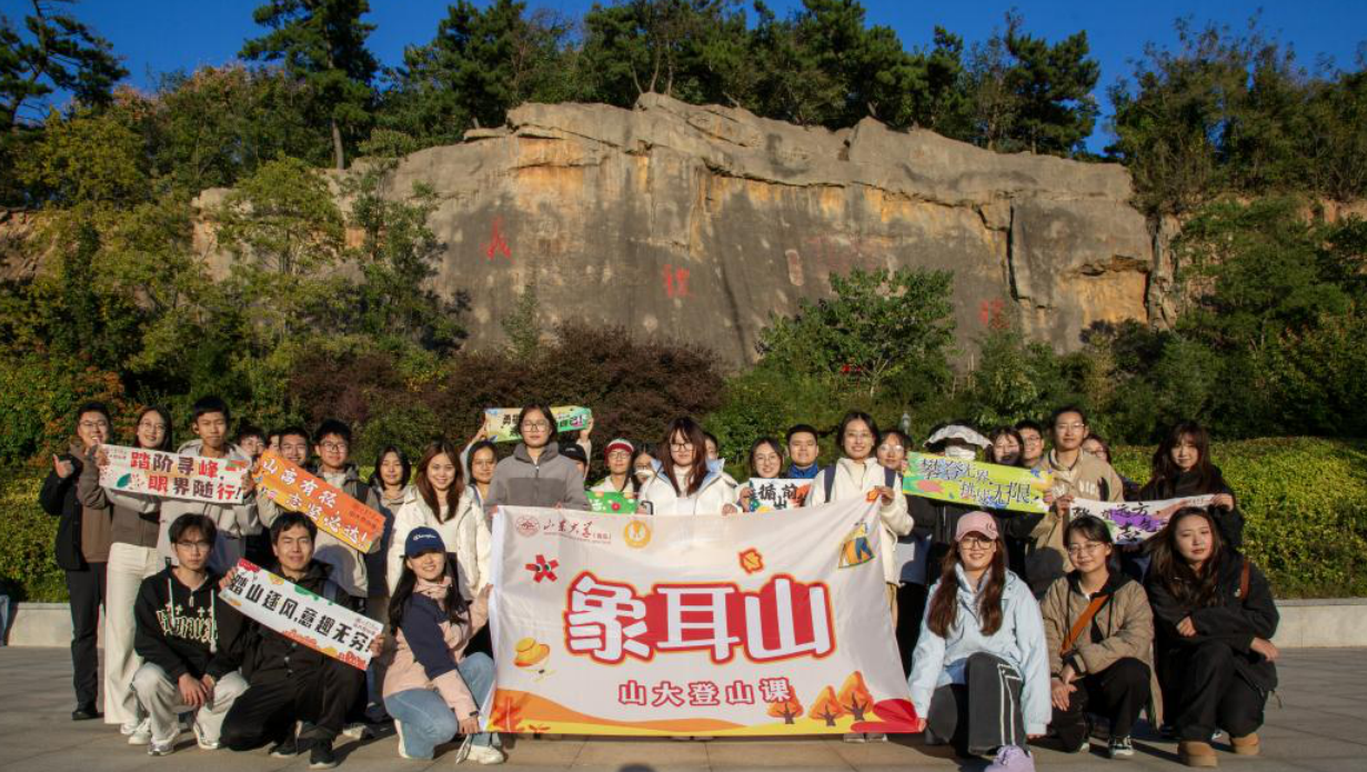 最后一段山路有些坡度,前面的同学主动伸手拉了我一把,我们互相鼓劲着往上爬。登顶的那一刻,风迎面吹来,整个青岛的景色尽收眼底。大家举着登山课的横幅合影。和同学聊天时,我想起以前登山只想着赶紧到山顶,可这次不一样,每一步都有文化的小惊喜,论语答题、诗词飞花令,让我重新爱上了传统文化。