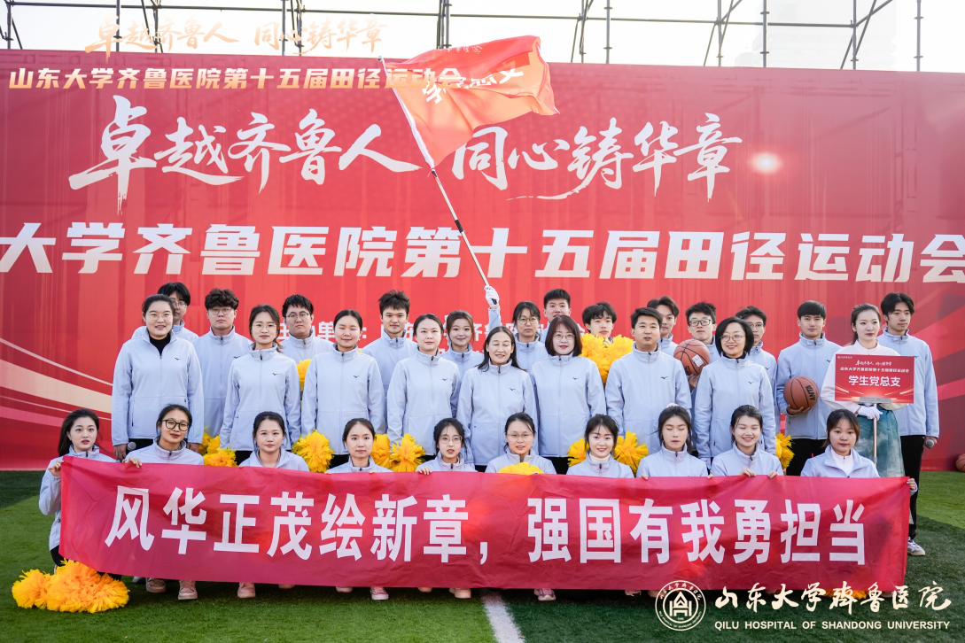 清晨阳光照耀下的操场,我们三十余人的方队终得展示。作为山东大学齐鲁医院学生党总支的代表,我们献上了一场凝聚汗水与热情的表演。
