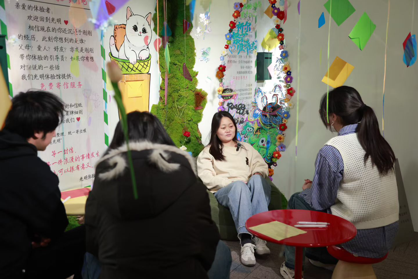 下午一点,我们抵达光明体验馆。当工作人员分发盲杖、关上活动室大门的瞬间,绝对的黑暗扑面而来,我下意识屏住了呼吸。作为习惯用眼睛观察、用数据判断的工科生,这种失去视觉的“失控感” 让我格外不安。我紧紧攥着盲杖,在 “笃笃” 的敲击声中试探着迈步,每一步都小心翼翼,生怕撞上障碍物。