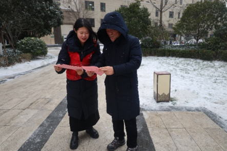 新学期伊始,济南迎来大雪天气,路面结冰、积雪堆积,寒风凛冽。山东大学集成电路学院“集暖巷陌”社区科普队顶风冒雪,走进济南市历下区环保科技园社区居委会,开展张贴传单、安全科普、扫雪铲雪等一系列志愿服务,以青春行动暖化寒冬,用点滴担当守护社区平安。