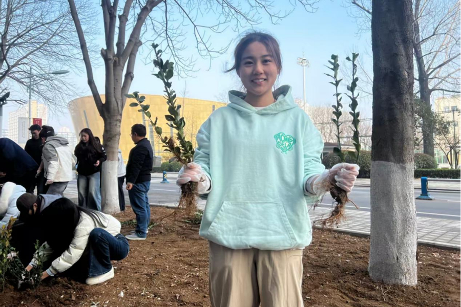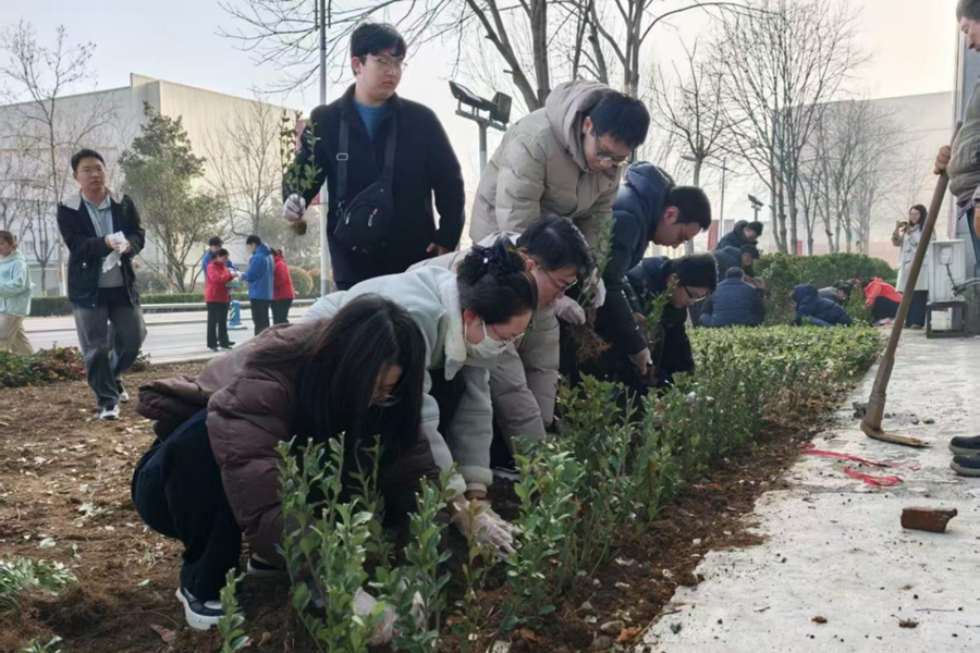 这是我人生第一次种树体验,温暖的阳光和微风、翠绿的卫矛、含苞待放的玉兰、粗糙且沉重的种树工具、团结协作的伙伴们、层出不穷又被逐一解决的困难,共同组成了这次难忘的经历。种树就像人生,一棵树苗落入土壤时,不会询问这片土地是否肥沃,而是努力向下扎根、向上生长,最终长成参天大树。很荣幸也很开心能为我爱的校园增添一抹绿、一树花。希望未来能有更多人参与种树,爱护环境。